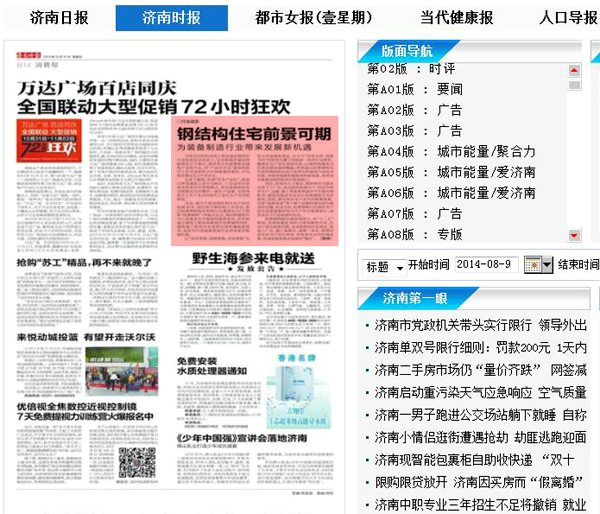 2014年10月31日,《濟南時報》第B14版《消費幫》報道:《鋼結(jié)構(gòu)住宅前景可期? 為裝備制造行業(yè)帶來發(fā)展新機遇》。