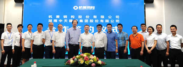 2017年5月31日,杭蕭鋼構股份有限公司(以下簡稱:杭蕭鋼構)與湖南中天建設集團股份有限公司(以下簡稱:湖南中天)在杭州正式簽署戰(zhàn)略合作協(xié)議。湖南省株洲市荷塘區(qū)區(qū)委書記鄔凌云,區(qū)委常委、區(qū)委辦主任文韶松,副區(qū)長陳柏文,湖南中天董事長楊中杰,董事、副總經理閔世雄,常務副總經理譚學文,杭蕭鋼構總裁張振勇、副總裁兼董事會秘書陳瑞、財務總監(jiān)許瓊、副總裁尹衛(wèi)澤、副總裁何賢德等出席并見證這一重要時刻。?
