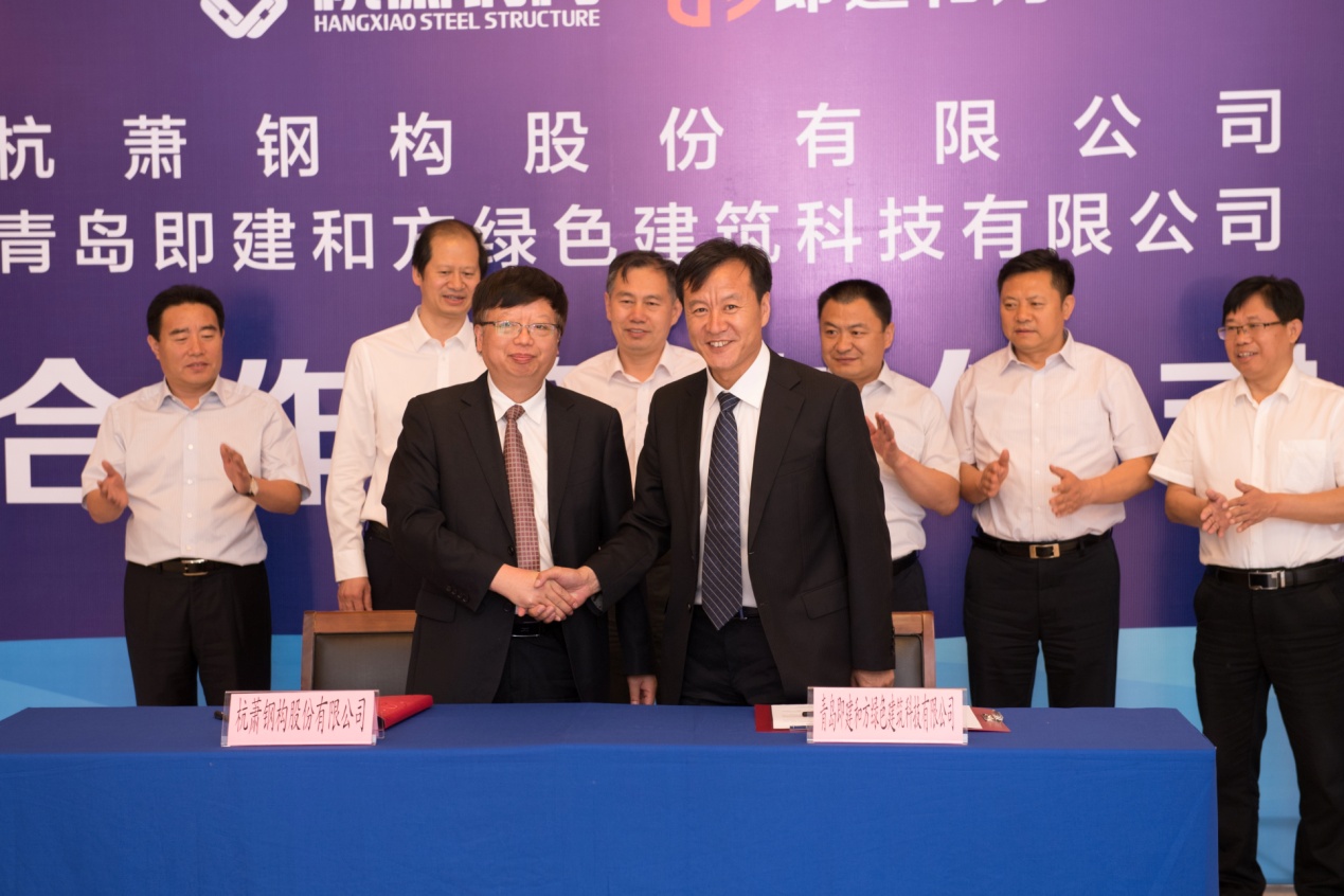 2017年6月2日,杭蕭鋼構股份有限公司(以下簡稱:杭蕭鋼構)與青島即建和方綠色建筑科技有限公司(以下簡稱:青島即建和方)在山東省即墨市舉行戰(zhàn)略合作簽約儀式。