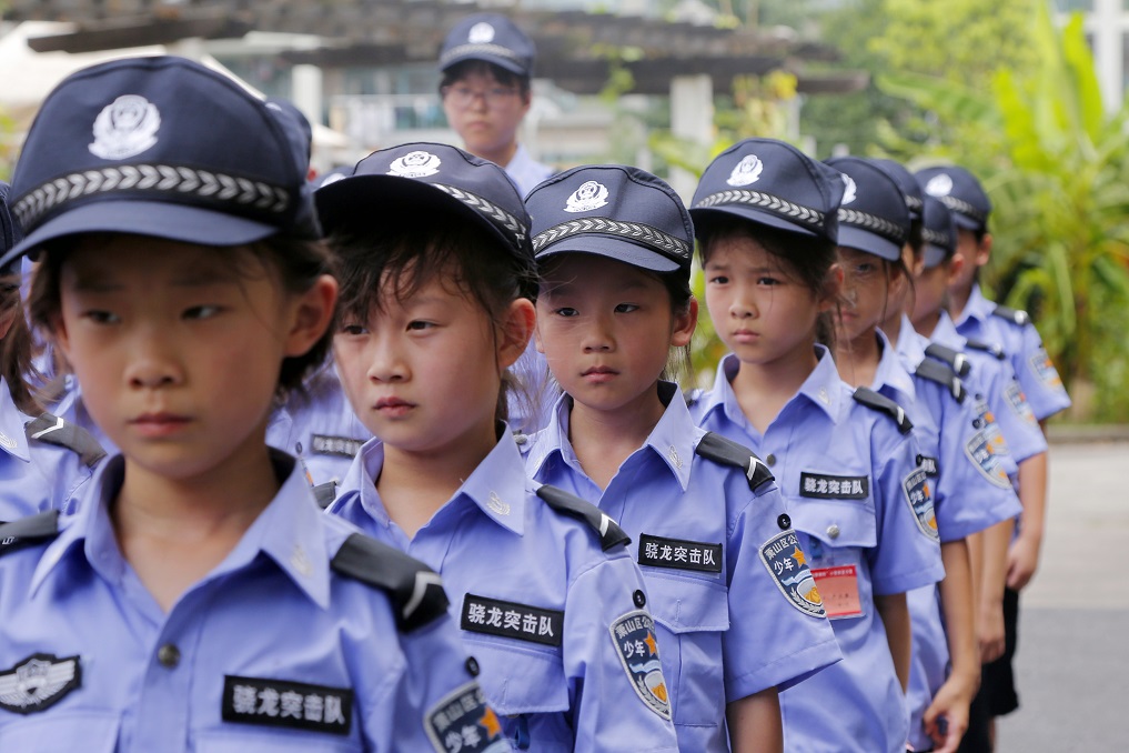 ▲7月9日下午,穿上警服的“小警察”代表們接過營旗,夏令營活動(dòng)正式開始。