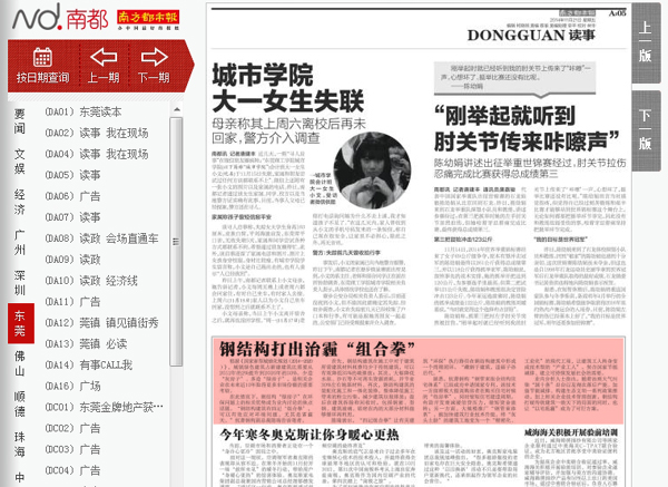 南方都市報(bào)是南方報(bào)業(yè)傳媒集團(tuán)所屬系列報(bào)之一,正式創(chuàng)刊于1997年,是廣東唯一省級(jí)綜合類大型城市日?qǐng)?bào),是中國版數(shù)最多的都市報(bào),面向珠三角地區(qū)主流人群,日發(fā)行量180萬。