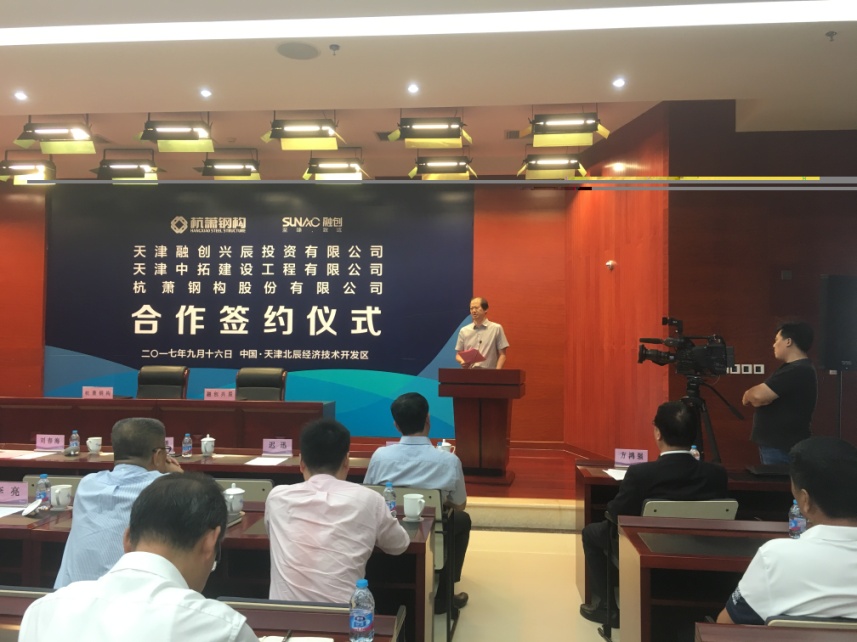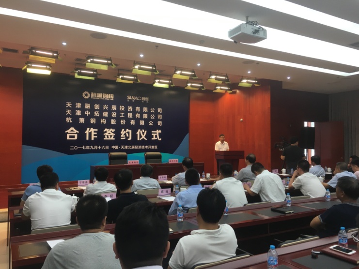 在金秋送爽、果實累累的季節(jié),杭蕭鋼構(gòu)迎來了豐收的喜悅。2017年9月16日,在天津國家級北辰經(jīng)濟(jì)技術(shù)開發(fā)區(qū),杭蕭鋼構(gòu)股份有限公司(簡稱杭蕭鋼構(gòu))與天津融創(chuàng)興辰投資有限公司(簡稱天津融創(chuàng))正式簽署戰(zhàn)略合作協(xié)議。這意味著,杭蕭鋼構(gòu)第66家戰(zhàn)略合作伙伴在天津誕生啦!