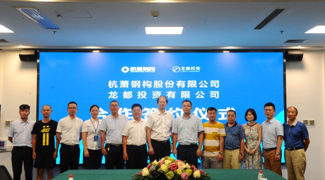 2017年8月29日,杭蕭鋼構(gòu)股份有限公司(簡稱:杭蕭鋼構(gòu))與龍都投資有限公司(簡稱:龍都投資)在杭州簽署戰(zhàn)略合作協(xié)議,將在浙江省麗水市建設(shè)全市首個鋼結(jié)構(gòu)住宅產(chǎn)業(yè)化項目。麗水市蓮都區(qū)區(qū)長陳豪、副區(qū)長俞麗威,麗水工業(yè)園區(qū)管委會主任管興標,龍都投資董事長黃培傳、副總經(jīng)理毛志敏,杭蕭鋼構(gòu)總裁張振勇、財務(wù)總監(jiān)許瓊、副總裁兼董事會秘書陳瑞、副總裁尹衛(wèi)澤等出席簽約儀式。