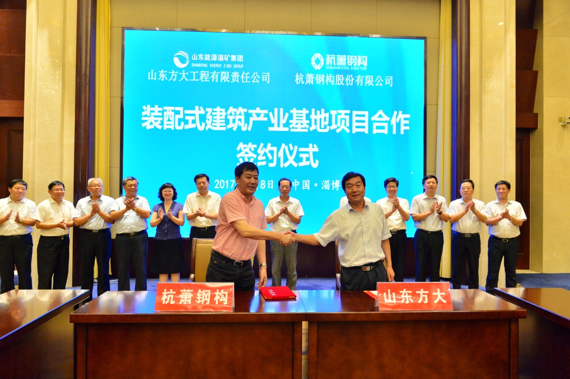 淄礦集團(tuán)董事長(zhǎng)、黨委書(shū)記孫中輝在8月8日杭蕭鋼構(gòu)與方大工程簽約儀式上說(shuō),將牢牢把握項(xiàng)目建設(shè)“天時(shí)、地利、人和”的大好時(shí)機(jī),嚴(yán)格按照國(guó)家級(jí)裝配式建筑產(chǎn)業(yè)基地建設(shè)標(biāo)準(zhǔn),緊緊圍繞生產(chǎn)智能化、產(chǎn)研一體化,高起點(diǎn)、高標(biāo)準(zhǔn)推動(dòng)項(xiàng)目建設(shè),加快促進(jìn)傳統(tǒng)建筑產(chǎn)業(yè)向“搭積木一樣建造房屋”的新方式轉(zhuǎn)變,努力將這一淄博市重大建設(shè)項(xiàng)目,打造成為淄博市產(chǎn)業(yè)轉(zhuǎn)型、動(dòng)能轉(zhuǎn)換的典范項(xiàng)目。