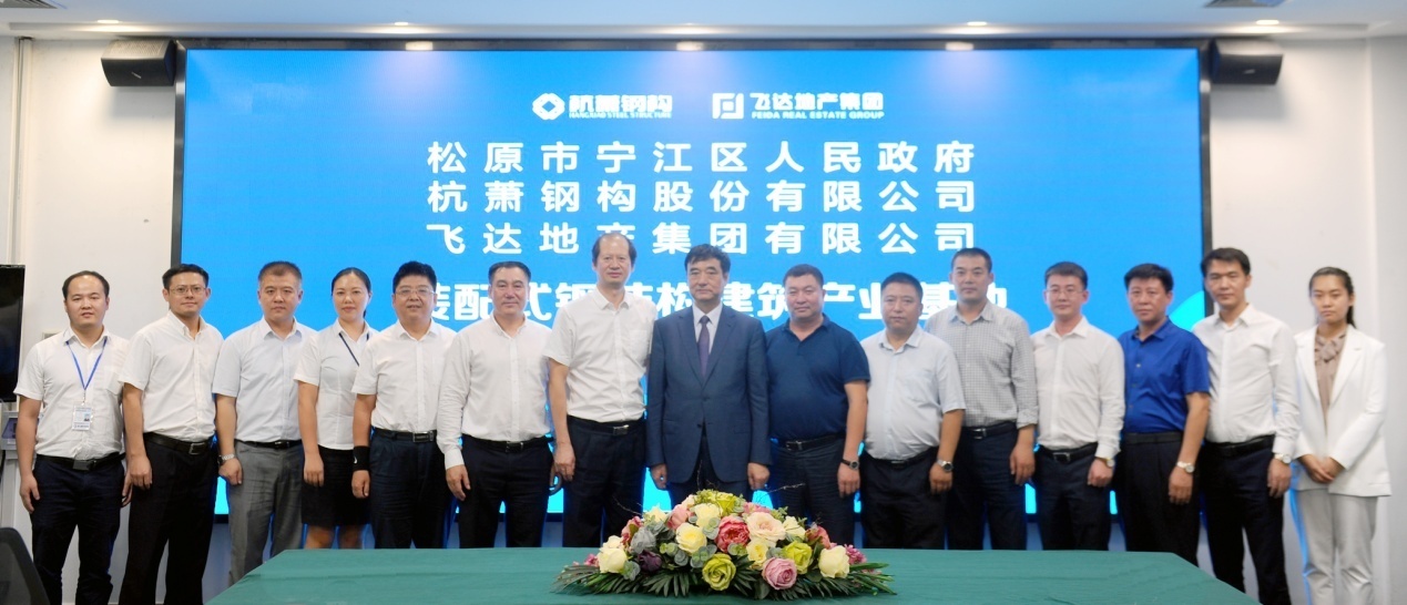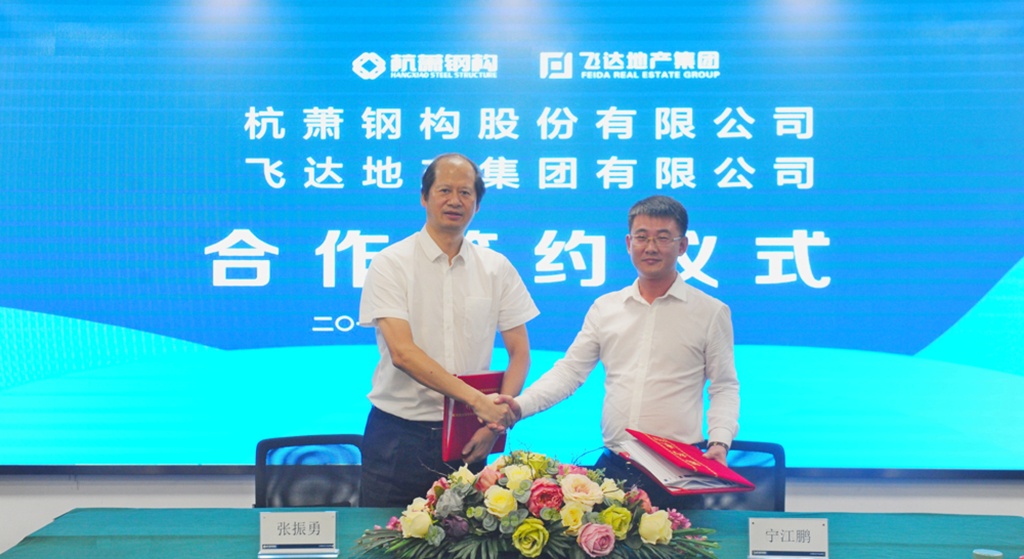 在舉國上下以飽滿的熱情喜迎黨的十九大勝利召開的濃厚氛圍中,2017年10月10日,杭蕭鋼構(gòu)股份有限公司(以下簡稱杭蕭鋼構(gòu))與飛達(dá)地產(chǎn)集團(tuán)有限公司(以下簡稱飛達(dá)地產(chǎn)集團(tuán))在杭州正式簽署戰(zhàn)略合作協(xié)議,用一份亮麗新答卷,向黨的十九大獻(xiàn)禮。這是杭蕭鋼構(gòu)在發(fā)展戰(zhàn)略中寫下的濃墨重彩的一筆,杭蕭鋼構(gòu)將攜手東北地區(qū)首家戰(zhàn)略合作伙伴,在吉林省松原市建設(shè)造福百姓的鋼結(jié)構(gòu)抗震安全新民居工程。
