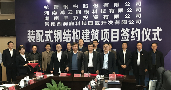 杭蕭鋼構(gòu)總裁張振勇講到,繼被住建部批準(zhǔn)為我國(guó)第一個(gè)鋼結(jié)構(gòu)“國(guó)家住宅產(chǎn)業(yè)化基地”后,今年又再次被住建部認(rèn)定為我國(guó)第一批“裝配式建筑產(chǎn)業(yè)基地”。裝配式鋼結(jié)構(gòu)建筑因其“輕、快、好、省”的四大優(yōu)異特性,彰顯出其綠色建筑的特征。戰(zhàn)略合作將影響常德市乃至湖南省的建筑格局,為湖南產(chǎn)業(yè)結(jié)構(gòu)的調(diào)整和建筑產(chǎn)業(yè)化現(xiàn)代化的可持續(xù)發(fā)展起到積極示范效應(yīng)。