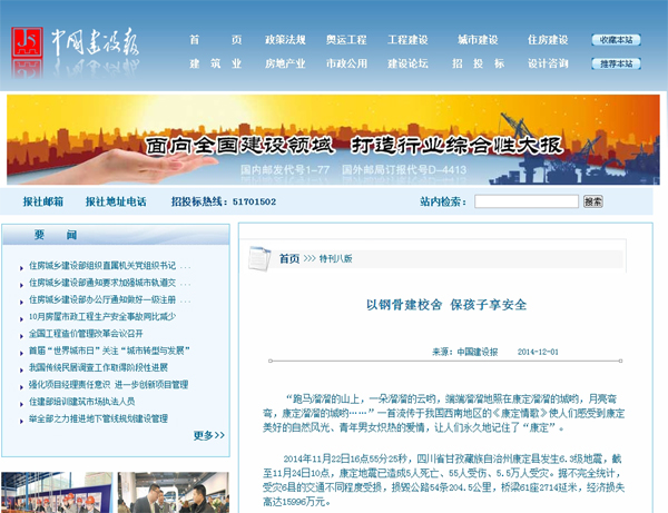 2014年12月1日,《中國建設(shè)報(bào)》第8版《鋼結(jié)構(gòu)》報(bào)道:《以鋼骨建校舍 保孩子享安全》。