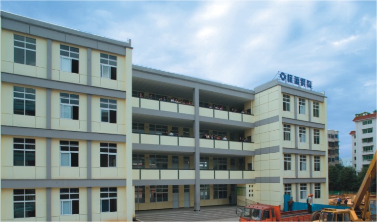 “抗震性能好是鋼結(jié)構(gòu)建筑的優(yōu)點(diǎn)之一。”杭蕭鋼構(gòu)總裁助理張德才說(shuō),很多城市的公共避難場(chǎng)所的建筑都是采用這種方式建造。10年前,杭蕭鋼構(gòu)就在云南、四川等省捐建了4所鋼結(jié)構(gòu)建筑學(xué)校。比如,采用鋼結(jié)構(gòu)建成的四川廣元市利州中學(xué)教學(xué)樓和學(xué)生宿舍樓,于2008年9月5日舉行奠基儀式,十一月基礎(chǔ)動(dòng)工,2009年三月底開(kāi)始主體的吊裝,七月底竣工,2009年秋季開(kāi)學(xué)投入使用?,F(xiàn)在該學(xué)??扇菁{18個(gè)教學(xué)班和滿足310名學(xué)生住宿。另外,2008年12月由杭蕭鋼構(gòu)援建的廣元市利州中學(xué)小學(xué)部教學(xué)樓——德源樓,占地面積536.7平方米,總建筑面積2146.76平方米。2009年8月30日投入使用,解決了當(dāng)時(shí)530余名學(xué)生的開(kāi)學(xué)問(wèn)題。