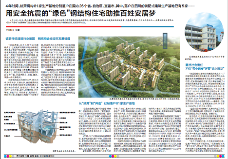 中國(guó)建筑設(shè)計(jì)院有限公司總工程師范重認(rèn)為,經(jīng)過(guò)企業(yè)、高校和科研設(shè)計(jì)單位的共同努力,鋼結(jié)構(gòu)住宅目前已經(jīng)形成了類(lèi)型較為豐富、技術(shù)相對(duì)完善的結(jié)構(gòu)體系,這種采用鋼與混凝土組合技術(shù)有助于解決傳統(tǒng)鋼結(jié)構(gòu)住宅的諸多問(wèn)題?!颁摻Y(jié)構(gòu)是目前抗震效果最為優(yōu)秀的一個(gè)建筑結(jié)構(gòu)形式?!敝幸本┱\(chéng)工程技術(shù)有限公司結(jié)構(gòu)總工程師王立軍說(shuō),隨著國(guó)家相關(guān)政策的出臺(tái),類(lèi)似杭蕭鋼構(gòu)這樣的企業(yè)也將迎來(lái)發(fā)展機(jī)遇。