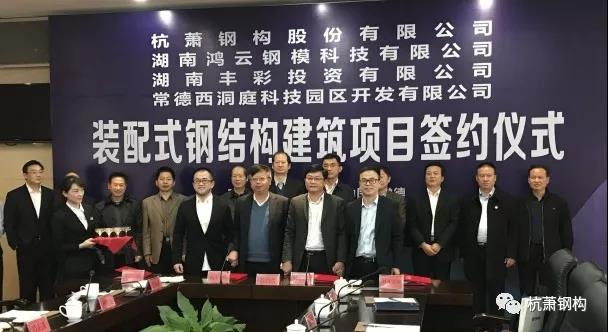 2017年11月16日,杭蕭鋼構(gòu)股份有限公司(以下簡稱杭蕭鋼構(gòu))與湖南鴻云鋼模科技有限公司(以下簡稱鴻云鋼模)在湖南省常德市舉辦戰(zhàn)略合作簽約儀式。簽約儀式上,杭蕭鋼構(gòu)副總裁方鴻強、鴻云鋼模董事長劉慎云作為代表簽署協(xié)議。湖南省住房和城鄉(xiāng)建設(shè)廳調(diào)研員廖序、湖南省鋼結(jié)構(gòu)行業(yè)協(xié)會秘書長魏小漢、湖南省住宅產(chǎn)業(yè)聯(lián)盟秘書長丁佳偉、常德市住房和城鄉(xiāng)建設(shè)局副局長呂正躍、西洞庭管理區(qū)黨委書記王啟武,黨委副書記、管委會主任周勝,杭蕭鋼構(gòu)總裁張振勇等共同見證。