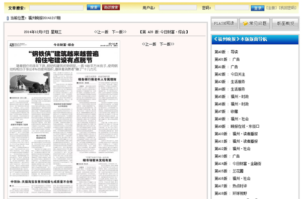 2014年12月17日,《福州晚報(bào)》第A28版《今日財(cái)富·綜合》版報(bào)道:《鋼鐵俠”建筑越來(lái)越普遍榕住宅建設(shè)有點(diǎn)脫節(jié)》。
