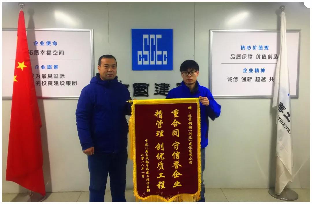 近日,杭蕭鋼構(gòu)(河北)建設(shè)有限公司收到來自中國建筑第八工程局大成飯店改建工程項(xiàng)目部的錦旗,對(duì)河北杭蕭在大成飯店改建工程項(xiàng)目鋼結(jié)構(gòu)施工中表現(xiàn)出的優(yōu)秀施工管理能力和誠信履約能力給予了高度認(rèn)可。