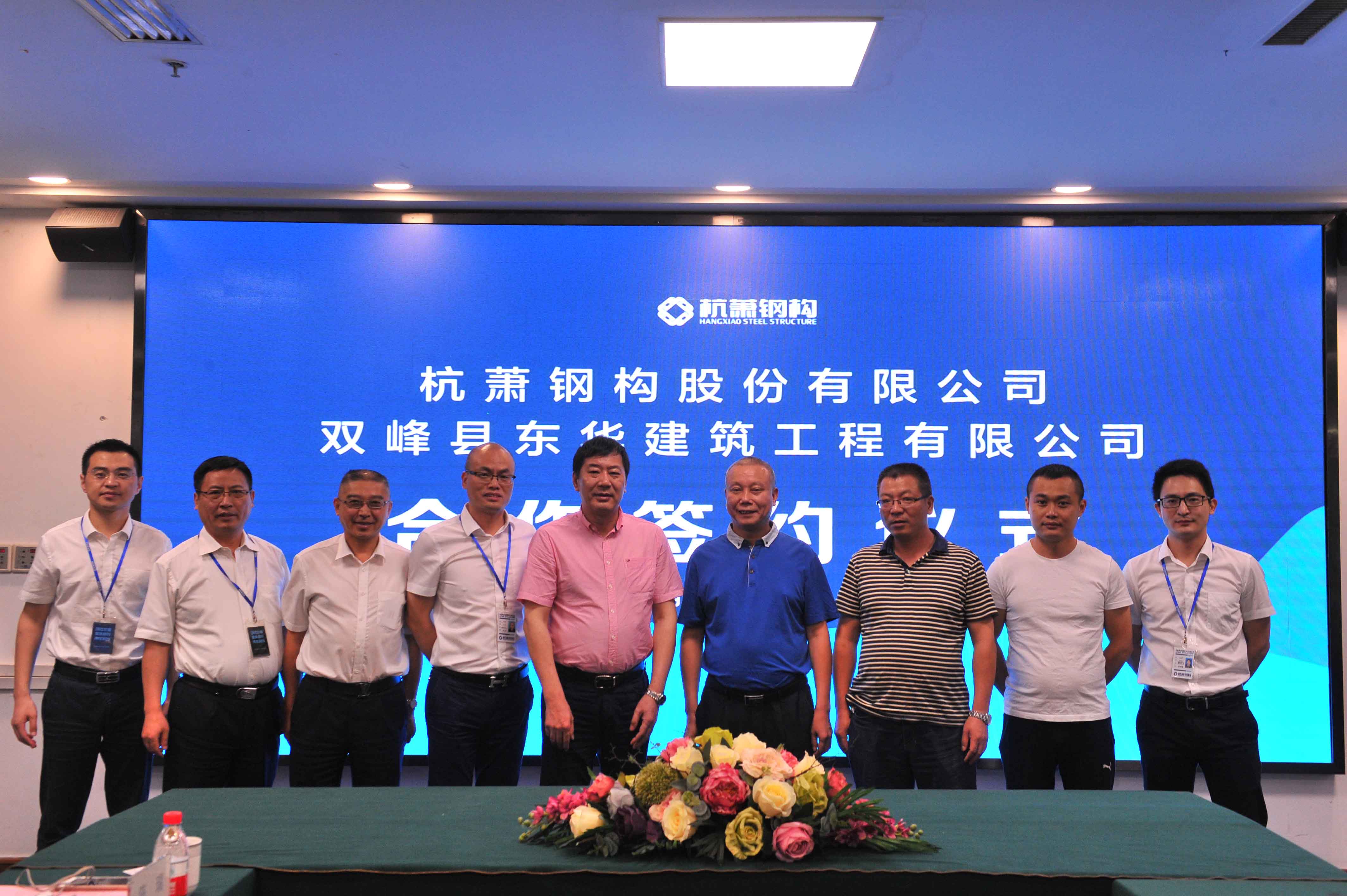 6月4日上午,杭蕭鋼構(gòu)股份有限公司(以下簡稱?: 杭蕭鋼構(gòu))與雙峰縣東華建筑工程有限公司(以下簡稱:東華公司)簽署戰(zhàn)略合作協(xié)議。東華公司董事長李余良、杭蕭鋼構(gòu)副總裁何賢德作為企業(yè)代表簽署協(xié)議。