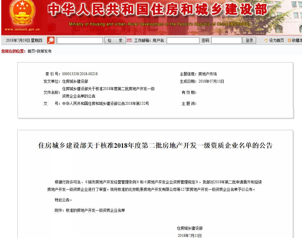 7月17日,住房城鄉(xiāng)建設部發(fā)布公告榮獲2018年度房地產(chǎn)開發(fā)一級資質(zhì)企業(yè)名單,杭蕭鋼構股份有限公司(以下簡稱“杭蕭鋼構”)控股子公司——萬郡房地產(chǎn)(包頭)有限公司(以下簡稱“包頭萬郡”)榮耀登榜,對于房地產(chǎn)企業(yè)而言,獲得國家房地產(chǎn)開發(fā)一級資質(zhì),意味著獲得了行業(yè)最高水準的認可。
