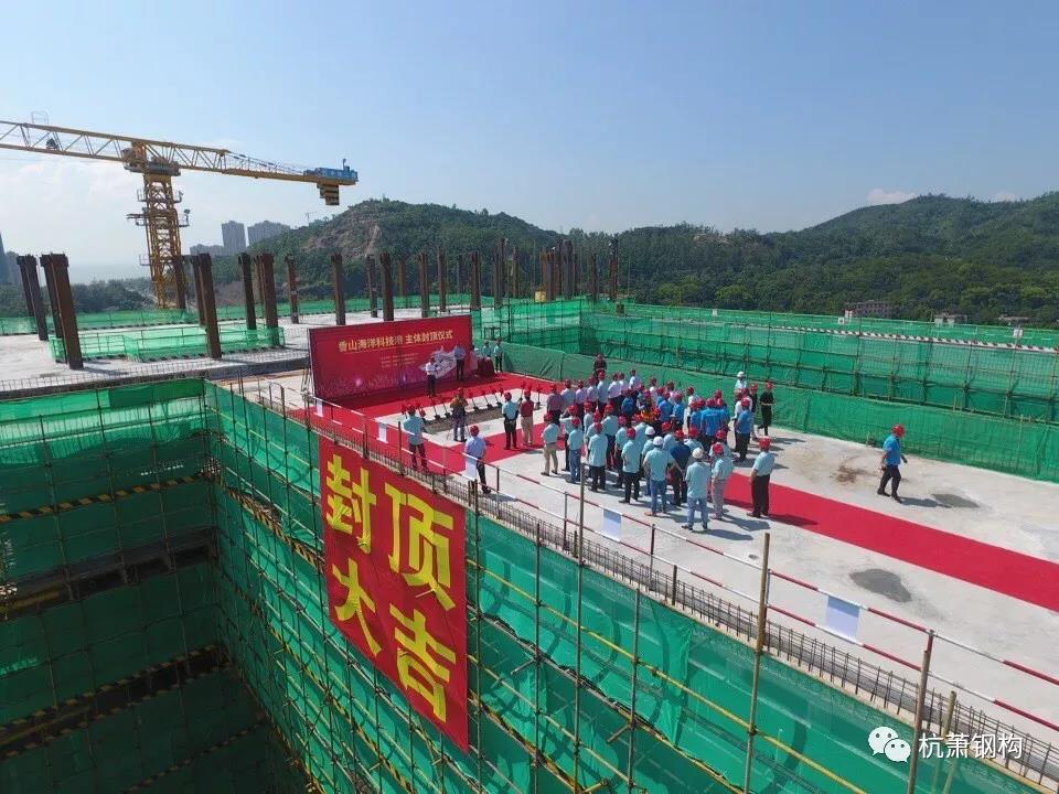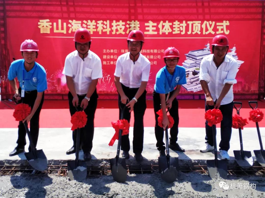 8月8日10時(shí),零丁洋畔,由杭蕭鋼構(gòu)股份有限公司(以下簡(jiǎn)稱“杭蕭鋼構(gòu)”)控股子公司——杭蕭鋼構(gòu)(廣東)有限公司(以下簡(jiǎn)稱“廣東杭蕭”)承接的廣東省及珠海市重點(diǎn)工程項(xiàng)目:全國(guó)首個(gè)無人船基地(命名“香山海洋科技港”),在一派喜慶的氣氛中完成了最后一注混凝土澆筑,順利封頂!各方領(lǐng)導(dǎo)蒞臨現(xiàn)場(chǎng)出席了封頂儀式。