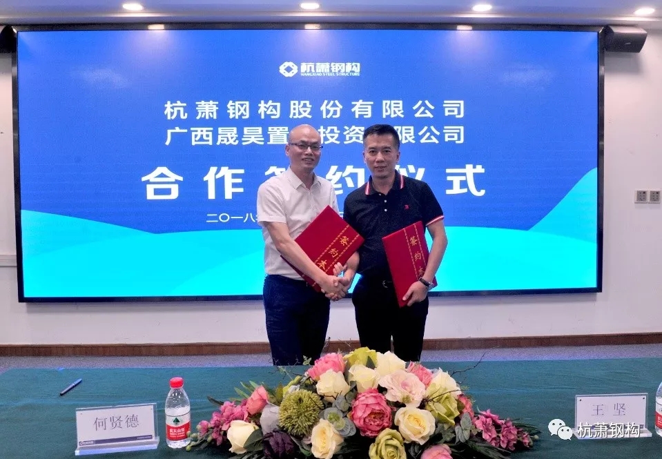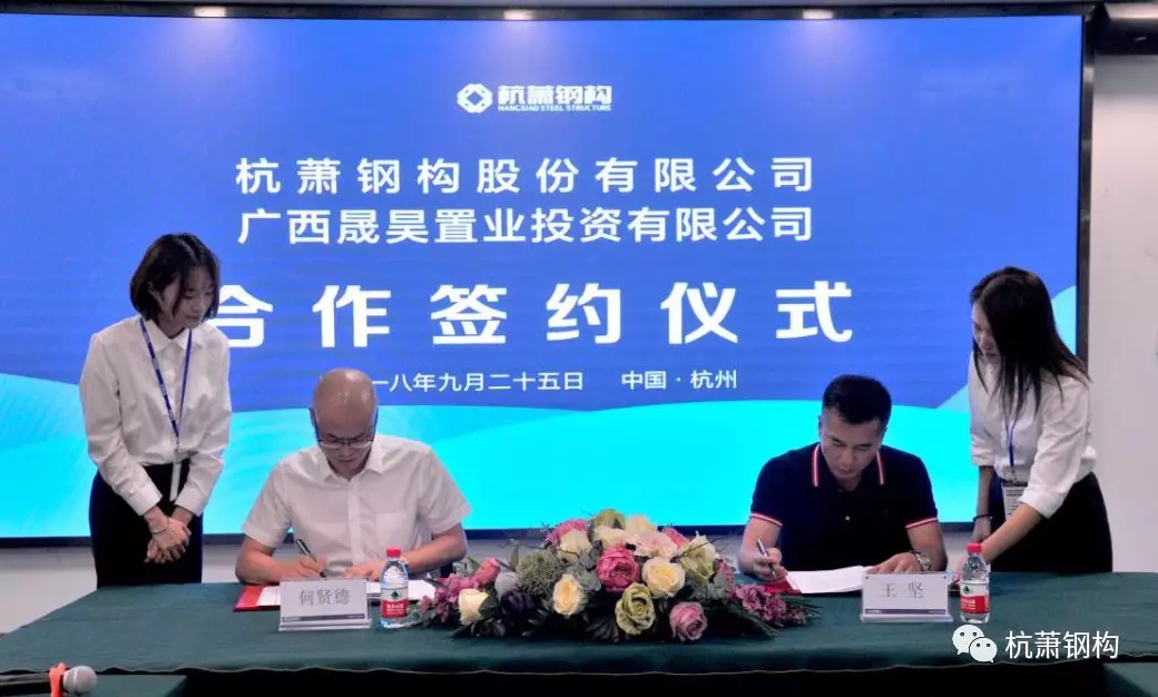 9月25日下午,杭蕭鋼構股份有限公司(以下簡稱“杭蕭鋼構”)與廣西晟昊置業(yè)投資有限公司(以下簡稱“晟昊置業(yè)”)簽署戰(zhàn)略合作協(xié)議。晟昊置業(yè)總經(jīng)理王堅、杭蕭鋼構副總裁何賢德作為企業(yè)代表簽署協(xié)議。