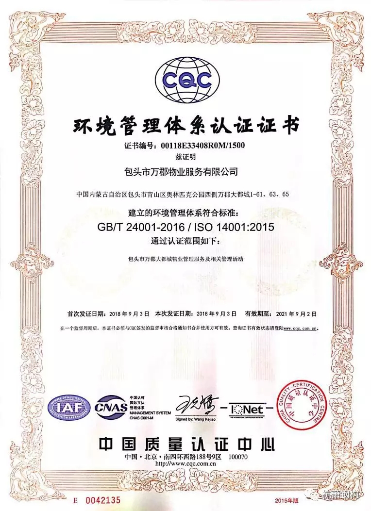 萬(wàn)郡物業(yè)承接的萬(wàn)郡大都城項(xiàng)目已被評(píng)為“綠色建筑小區(qū)”,為了提升物業(yè)公司管理水平,順應(yīng)市場(chǎng)經(jīng)濟(jì)發(fā)展的要求,緊跟國(guó)際市場(chǎng)步伐,證實(shí)公司具備承接綠色建筑項(xiàng)目的服務(wù)能力,同時(shí)可為承接項(xiàng)目“萬(wàn)郡大都城”在綠色建筑評(píng)級(jí)中加分。2018,萬(wàn)郡物業(yè)將環(huán)境質(zhì)量體系認(rèn)證列入了年度經(jīng)營(yíng)管理計(jì)劃。
