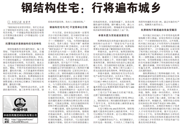 2015年5月11日,《中國建設(shè)報》第8版《鋼結(jié)構(gòu)》報道:《鋼結(jié)構(gòu)住宅:行將遍布城鄉(xiāng)》。