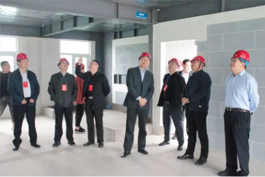 禹州市政協(xié)趙主席一行首先參觀了許昌恒達(dá)杭蕭建造的鋼結(jié)構(gòu)住宅體系樣板房。許昌恒達(dá)杭蕭孫總介紹了由杭蕭鋼構(gòu)自主創(chuàng)新研發(fā)的“鋼管混凝土束組合結(jié)構(gòu)住宅體系”。在詳細(xì)了解其抗震減災(zāi)、節(jié)能環(huán)保、建設(shè)周期短、布局靈活、隔音隔熱等優(yōu)勢后,考察團(tuán)一行對鋼結(jié)構(gòu)裝配式建筑作出高度評價。