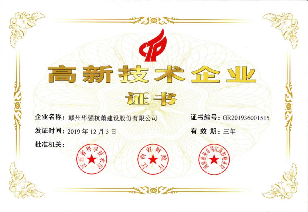 近日,杭蕭鋼構(gòu)戰(zhàn)略合作參股公司——贛州華強杭蕭建設股份有限公司(以下簡稱“贛州華強杭蕭”)獲評由江西省科學技術(shù)廳、江西省財政廳、國家稅務總局江西省稅務局聯(lián)合頒發(fā)的高新技術(shù)企業(yè)證書,意味著贛州華強杭蕭的科技創(chuàng)新成果得到了社會各界的認可、為推動綠色建筑發(fā)展所做的貢獻得到了肯定。