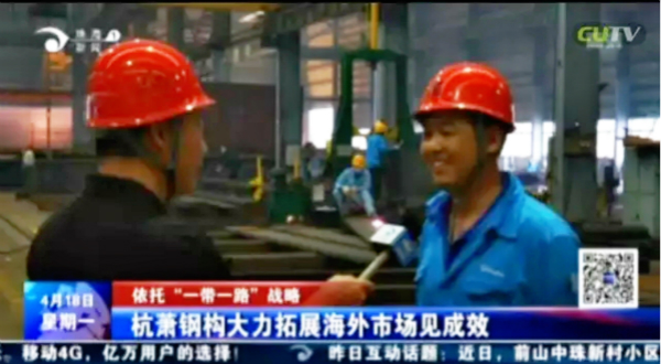 珠海電視臺2016年4月18日珠海新聞報(bào)道:近日,位于珠海平沙的廣東杭蕭鋼構(gòu)有限公司向越南永興燃煤電廠運(yùn)送了首批鋼結(jié)構(gòu)產(chǎn)品,這也是該公司參與“一帶一路”建設(shè)的首個(gè)項(xiàng)目。在“一帶一路”國家戰(zhàn)略的帶動下,杭蕭鋼構(gòu)公司逐步開拓海外市場,迎來了更多訂單。?