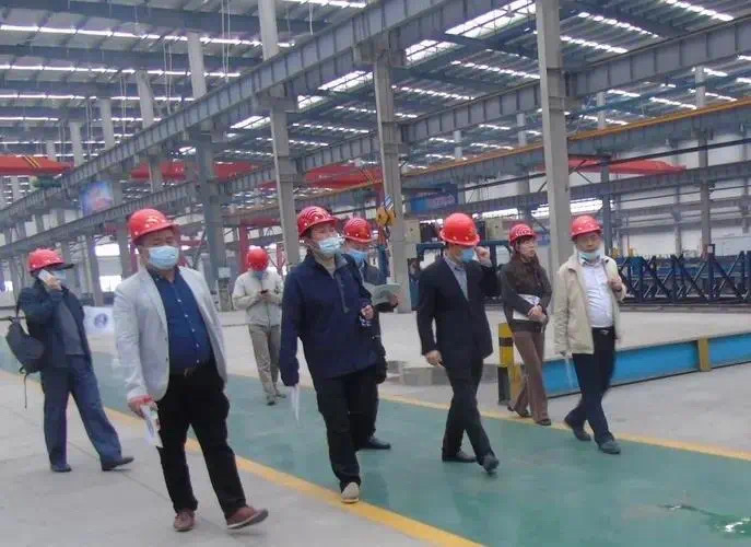 吳志軍院長一行深入生產(chǎn)車間,了解了江西綠建城投杭蕭的疫情復(fù)工情況及產(chǎn)能,實(shí)地查看了鋼管束模型構(gòu)件及車間生產(chǎn)情況、結(jié)構(gòu)體系、圍護(hù)系統(tǒng)及用材用料。劉清華副總經(jīng)理介紹到,裝配式鋼結(jié)構(gòu)住宅體系,建筑材料都是工業(yè)化生產(chǎn)、機(jī)械化施工,沒有現(xiàn)場直接濕作業(yè),裝配率高,相對于傳統(tǒng)施工,裝配式建筑施工過程更加安全,工程質(zhì)量更有保障。