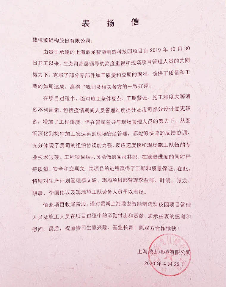 杭蕭鋼構(gòu)項目部自該項目開工以來,始終堅持高標(biāo)準(zhǔn)、嚴(yán)要求,在確保工程進(jìn)度的同時,嚴(yán)把質(zhì)量安全關(guān),使得項目保質(zhì)保量按期封頂,用實際行動做到優(yōu)質(zhì)高效履約,贏得了建設(shè)單位及相關(guān)各方的一致好評。