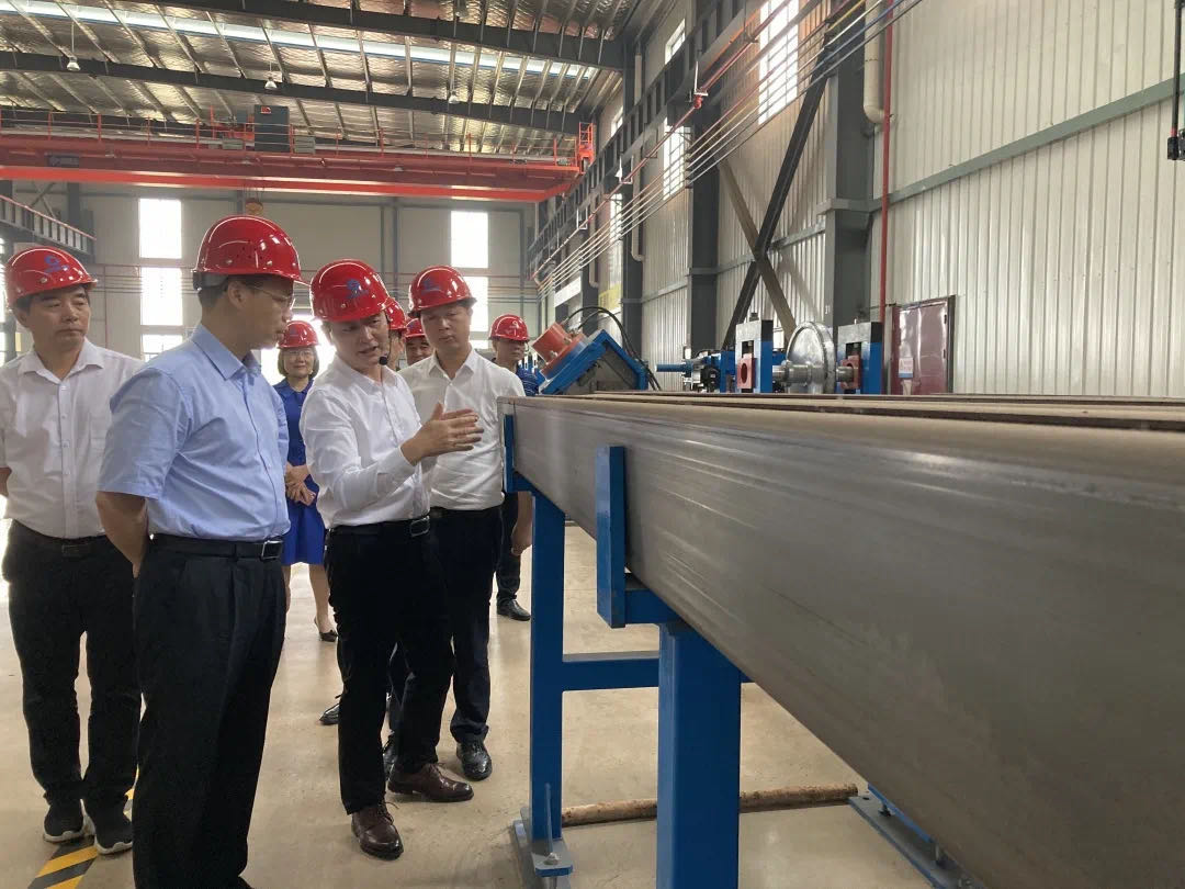近日,湖南省岳陽市委常委、統(tǒng)戰(zhàn)部長胡建新帶領(lǐng)市委統(tǒng)戰(zhàn)部一行蒞臨杭蕭鋼構(gòu)戰(zhàn)略合作參股公司——湖南凱博杭蕭建筑科技股份有限公司(以下簡稱“湖南凱博杭蕭”)調(diào)研指導(dǎo)。湘陰縣委副書記、縣長李鎮(zhèn)江,縣委常委、統(tǒng)戰(zhàn)部長李慶國,縣政協(xié)副主席、工商聯(lián)主席陶娜,縣高新區(qū)管委會主任龐國榮等領(lǐng)導(dǎo)陪同調(diào)研。湖南凱博杭蕭總經(jīng)理陳丹熱情接待。