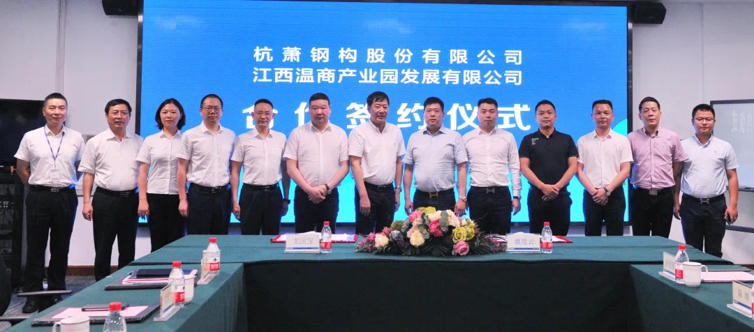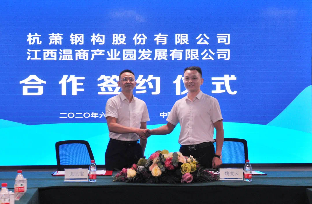 6月12日,杭蕭鋼構(gòu)股份有限公司(以下簡(jiǎn)稱“杭蕭鋼構(gòu)”)與江西溫商產(chǎn)業(yè)園發(fā)展有限公司(以下簡(jiǎn)稱“江西溫商產(chǎn)業(yè)園”)在杭州杭蕭鋼構(gòu)集團(tuán)總部簽署戰(zhàn)略合作協(xié)議。江西溫商產(chǎn)業(yè)園法人代表魏度云、杭蕭鋼構(gòu)副總裁尤匡寶作為企業(yè)代表簽署協(xié)議。