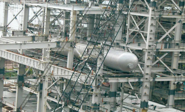 該項目是河北杭蕭承接的首個設(shè)備精加工鋼結(jié)構(gòu)制作工程,屬于設(shè)備精加工鋼結(jié)構(gòu)。項目內(nèi)部結(jié)構(gòu)復(fù)雜、分體構(gòu)件需預(yù)拼裝、拼裝精度要求高,整體制作要求遠(yuǎn)高于國內(nèi)外鋼結(jié)構(gòu)建筑工程。