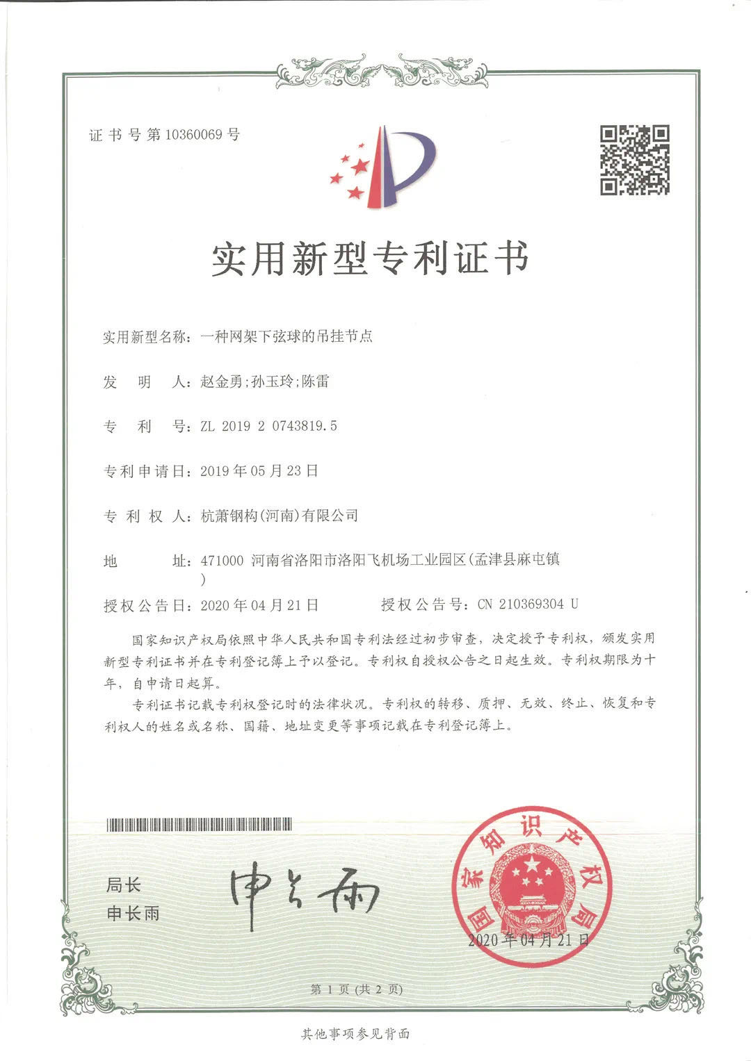 近日,杭蕭鋼構(gòu)(河南)有限公司(以下簡稱“河南杭蕭”)的六項實用新型專利申請順利通過國家知識產(chǎn)權(quán)局審查,獲得授權(quán)。