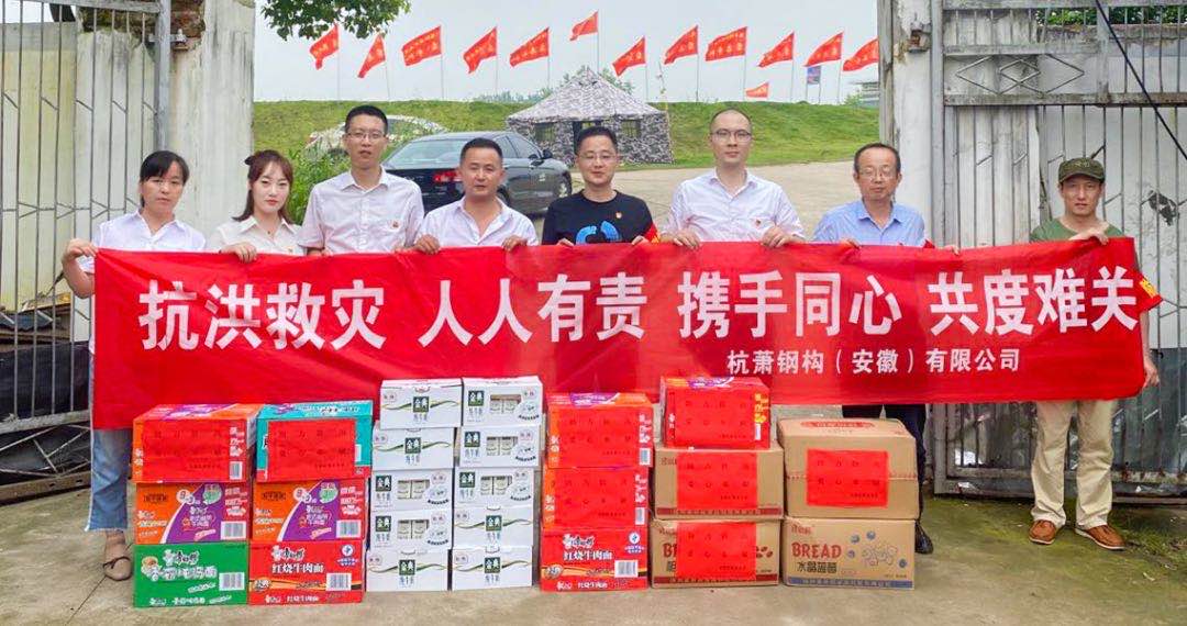 洪水無情人有情,杭蕭鋼構(gòu)(安徽)有限公司(以下簡稱“安徽杭蕭”)、杭蕭鋼構(gòu)(江西)有限公司(以下簡稱“江西杭蕭”)聞訊而動,積極參與到當?shù)乜购榫葹?zāi)工作中。