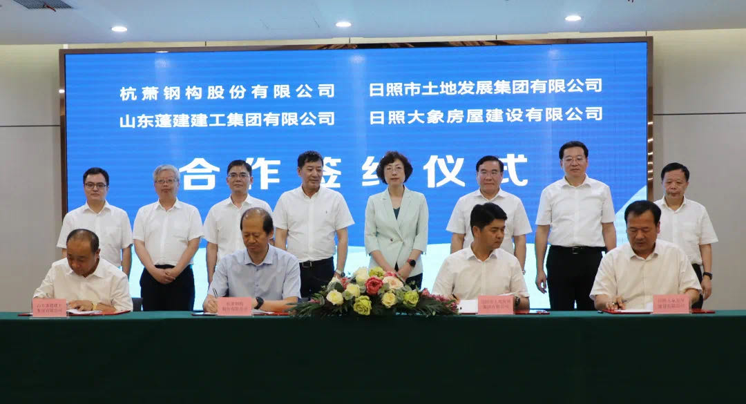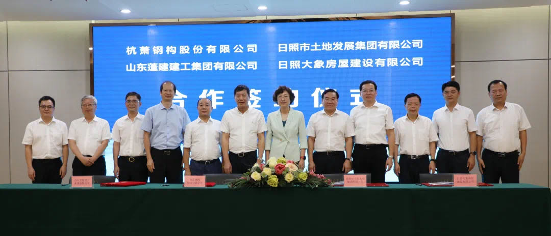 8月11日,杭蕭鋼構(gòu)股份有限公司(以下簡稱“杭蕭鋼構(gòu)”)與日照市土地發(fā)展集團有限公司(以下簡稱“日照市土地發(fā)展集團”)、山東蓬建建工集團有限公司(以下簡稱“山東蓬建集團”)、日照大象房屋建設(shè)有限公司(以下簡稱“日照山海大象集團”)在杭州簽署戰(zhàn)略合作協(xié)議。日照市土地發(fā)展集團黨委書記、董事長毛懷偉,山東蓬建建工集團董事長梁平,日照山海大象集團董事長相豐,杭蕭鋼構(gòu)董事、萬郡房產(chǎn)董事長張振勇作為企業(yè)代表簽署協(xié)議。