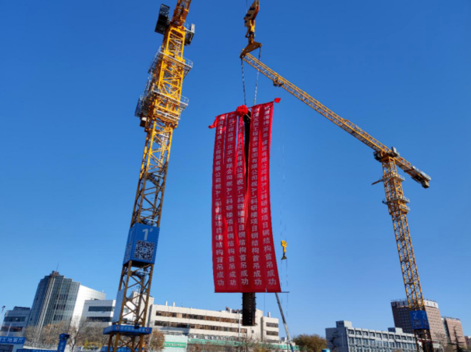 近日,杭蕭鋼構(gòu)河北建設(shè)有限公司(以下簡稱“河北杭蕭”)A-1科研樓順利完成鋼結(jié)構(gòu)首吊。總承包單位、施工單位、監(jiān)理單位、設(shè)計單位出席了首吊儀式。