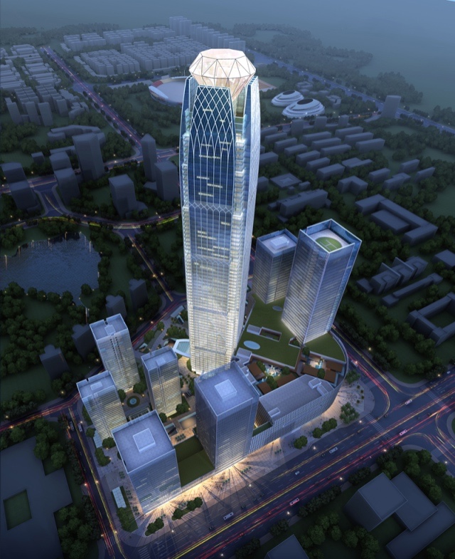 ? 該項目位于臺州中央商務區(qū)市府大道和學院路交叉口,地上主體建筑66層,高度299米,建筑面積124105.36平方米;該建筑集綜合百貨、高級酒店、高端公寓、觀光和文化休閑娛樂于一體,整體外形獨特,塔頂設計有“鉆石”塔冠,極大增強了該大型商務綜合體的辨識度。該項目的建成,對于加快當?shù)爻鞘械慕ㄔO,推動現(xiàn)代服務業(yè)發(fā)展均具有十分重要的意義。