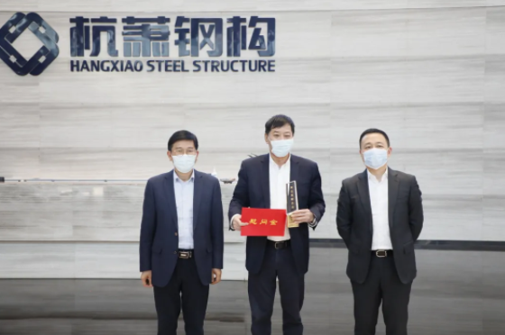 2月19日是大年初八,也是節(jié)后上班第二天。蕭山區(qū)委常委、常務(wù)副區(qū)長(zhǎng)吳煒煒,區(qū)政協(xié)副主席陳金良以及區(qū)政府辦公室、區(qū)科技局、區(qū)金融辦負(fù)責(zé)人一行走訪杭蕭鋼構(gòu)股份有限公司(下稱“杭蕭鋼構(gòu)”),為企業(yè)發(fā)展加油吶喊、鼓勁打氣,并授予杭蕭鋼構(gòu)2020年度蕭山區(qū)“突出貢獻(xiàn)企業(yè)”獎(jiǎng)杯。