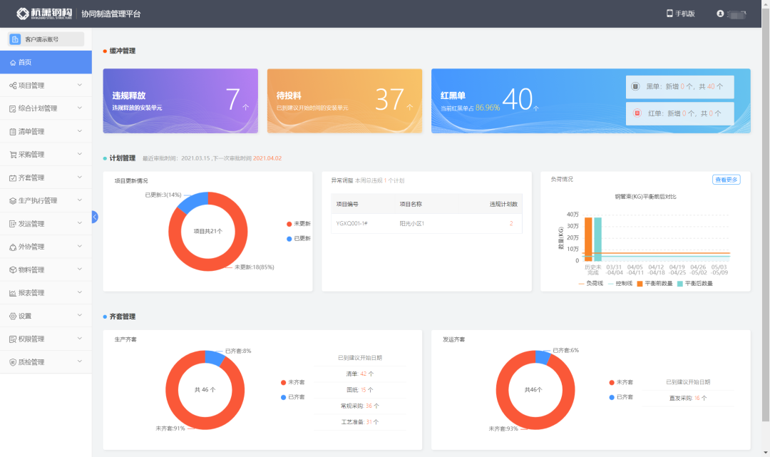 杭蕭協(xié)同制造管理系統(tǒng)可實(shí)現(xiàn)一周內(nèi)快速部署,培訓(xùn)周期短,使用成本低。同時也可選購智能運(yùn)營決策分析、裝備數(shù)字化等離線擴(kuò)展增強(qiáng)模塊,具有很好的擴(kuò)展升級能力。系統(tǒng)在杭蕭鋼構(gòu)30余年行業(yè)經(jīng)驗(yàn)總結(jié)的基礎(chǔ)上,協(xié)助企業(yè)重新定義覆蓋計(jì)劃、設(shè)計(jì)、采購、生產(chǎn)、發(fā)運(yùn)全生命周期的生產(chǎn)管理模型。