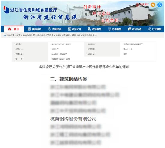 近日,浙江省住房和城鄉(xiāng)建設(shè)廳公布了浙江省建筑產(chǎn)業(yè)現(xiàn)代化示范企業(yè)名單,通過(guò)層層篩選,經(jīng)過(guò)材料初審、指標(biāo)評(píng)定和社會(huì)公示等環(huán)節(jié),杭蕭鋼構(gòu)從全省各候選企業(yè)中脫穎而出,獲評(píng)“浙江省建筑產(chǎn)業(yè)現(xiàn)代化示范企業(yè)”。