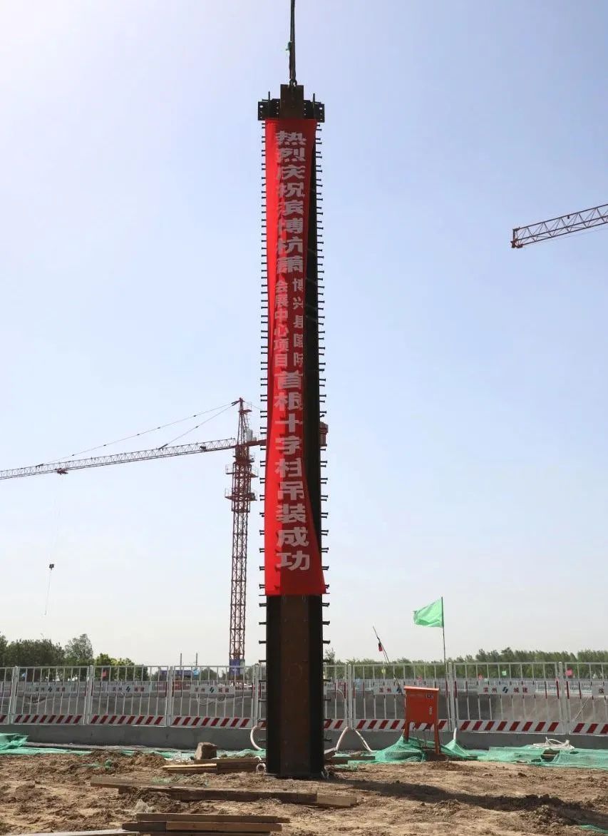 近日,由杭蕭鋼構(gòu)戰(zhàn)略合作參股公司——山東濱博杭蕭綠色建筑科技有限公司(以下簡(jiǎn)稱“山東濱博杭蕭”)參建的博興縣國(guó)際會(huì)展中心項(xiàng)目施工現(xiàn)場(chǎng)禮炮轟鳴,在施工人員的默契配合下,首根十字鋼柱被緩緩吊起,按照預(yù)定方案,嚴(yán)絲合縫地完成吊裝。首吊的成功標(biāo)志著該項(xiàng)目正式進(jìn)入施工階段。