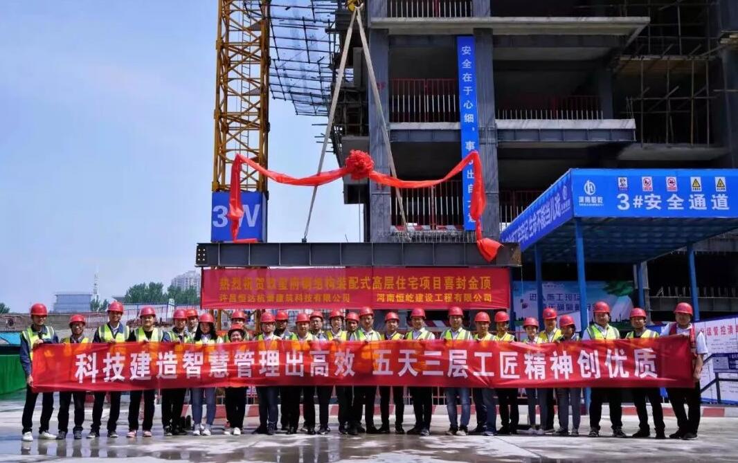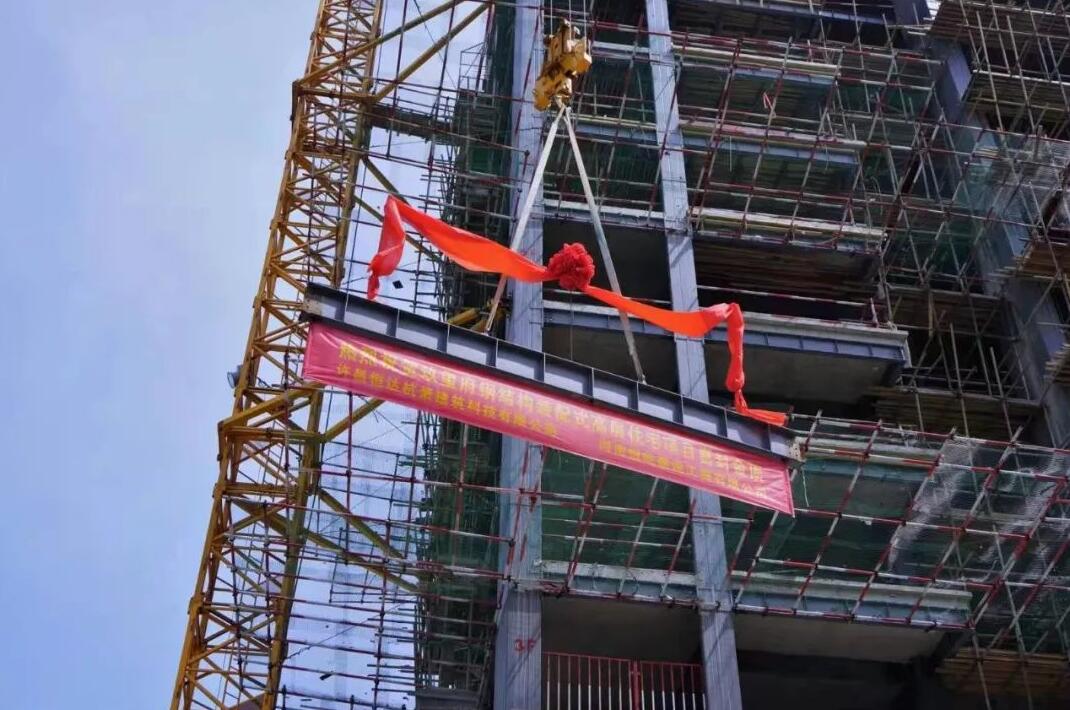 滿目秾華春意在,晚霞澄錦照芙蓉。近日,由杭蕭鋼構(gòu)戰(zhàn)略合作參股公司——許昌恒達杭蕭建筑科技有限公司(以下簡稱“許昌恒達杭蕭”)參建的許昌玖璽府項目3#樓最后一榀鋼梁載著彩帶順利起吊,標(biāo)志著許昌市建安區(qū)首個鋼結(jié)構(gòu)裝配式高層住宅項目榮耀封頂。