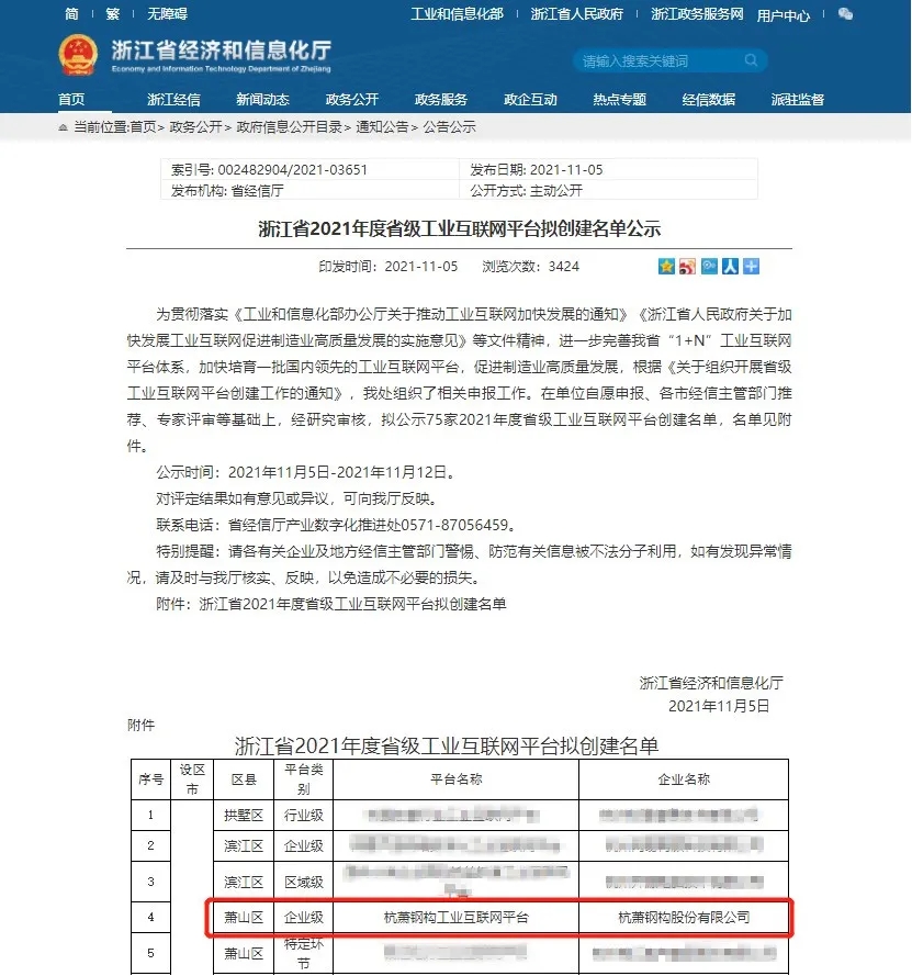 近日,浙江省經(jīng)濟和信息化廳公示“浙江省2021年度省級工業(yè)互聯(lián)網(wǎng)平臺擬創(chuàng)建名單”。在單位自愿申報、各市經(jīng)信主管部門推薦、專家評審等基礎(chǔ)上,經(jīng)研究審核,杭蕭鋼構(gòu)憑借“杭蕭鋼構(gòu)工業(yè)互聯(lián)網(wǎng)平臺”成功上榜。