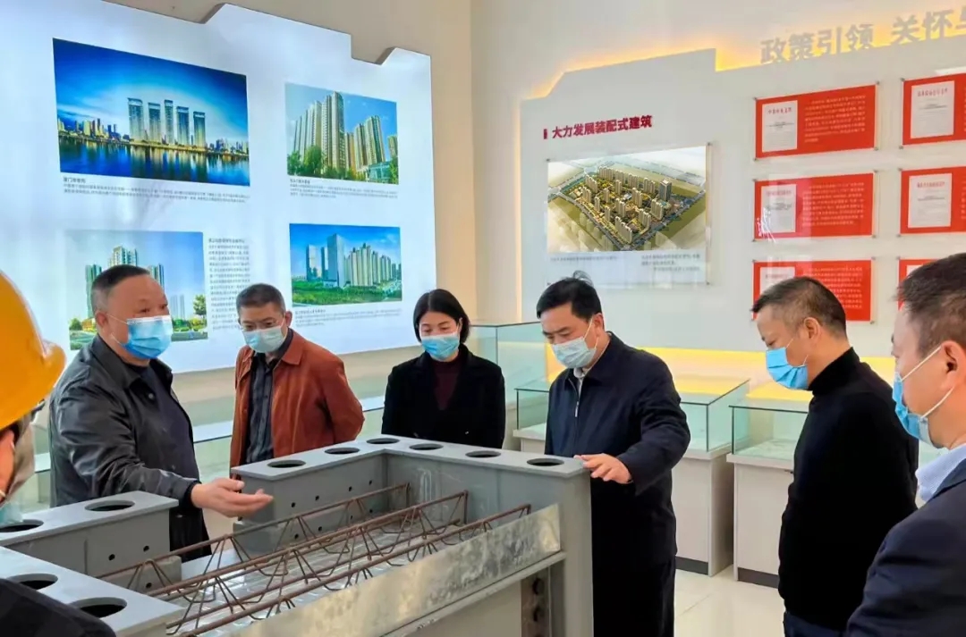 李昌海書記一行實地參觀了濱江尚都保障性住房項目建設(shè)工地和樣板房,調(diào)研了解規(guī)劃設(shè)計、疫情防控、施工安全、工程進度等情況。湖北華林杭蕭董事長兼濱江尚都保障性住房項目指揮長王林結(jié)合項目現(xiàn)場對裝配式鋼結(jié)構(gòu)的優(yōu)勢進行了詳細的介紹。李昌海書記一行對項目整體建設(shè)推進情況和項目環(huán)境建設(shè)高度認可,并對湖北華林杭蕭在鄂西北地區(qū)大力發(fā)展綠色裝配式建筑所發(fā)揮的示范引領(lǐng)作用給予了充分的肯定。