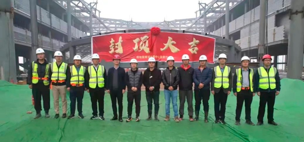 近日,在業(yè)主、總包及監(jiān)理單位的共同見證下,由杭蕭鋼構(gòu)(山東)有限公司(以下簡稱“山東杭蕭”)承建的濟南綠地國博城會展中心項目,隨著液壓提升裝置緩緩提升到位,登錄廳鋼結(jié)構(gòu)穹頂提升順利完成,標(biāo)志著登錄廳正式封頂完成。