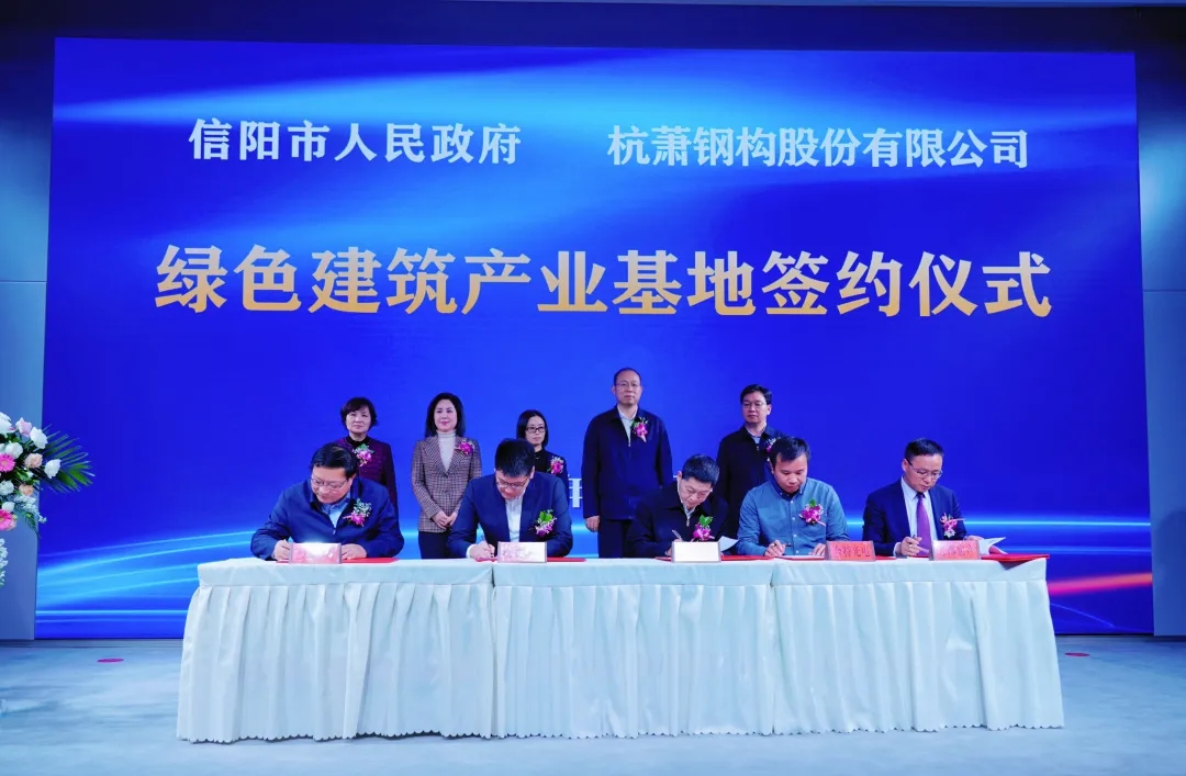 11月23日,杭蕭鋼構股份有限公司與信陽市人民政府簽署戰(zhàn)略合作協(xié)議,合作共建杭蕭鋼構綠色裝配式鋼結構建筑產(chǎn)業(yè)基地項目。信陽市市長蔡松濤、杭蕭鋼構總裁單際華出席簽約儀式并致辭。
