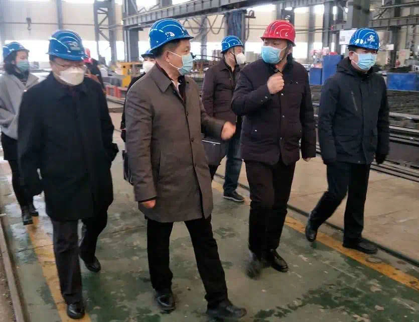 近日,內(nèi)蒙古包頭市人大常委會副主任郭甫欣,青山區(qū)委常委、政府常務(wù)副區(qū)長李培文,包頭裝備制造產(chǎn)業(yè)園區(qū)管委會主任侯永峰一行走訪杭蕭鋼構(gòu)(內(nèi)蒙古)有限公司(以下簡稱“內(nèi)蒙杭蕭”)調(diào)研復(fù)工情況及防疫措施。內(nèi)蒙杭蕭總經(jīng)理王勝利攜領(lǐng)導(dǎo)班子陪同調(diào)研。