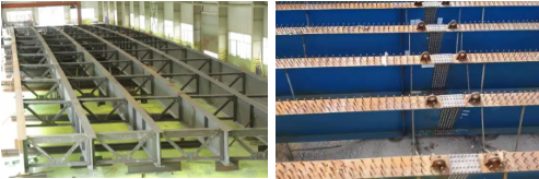 該橋為拱形斜交鋼板梁橋,主體結(jié)構(gòu)為6片截面為H1600*400*16*60 H型鋼梁,通過支撐相互連接,使用材料為美標耐腐蝕鋼材ASTM GR50W材質(zhì),完全按照美國鋼結(jié)構(gòu)協(xié)會的標準(AASHTO AWS D1.5M D1.5-2015)要求加工與驗收。