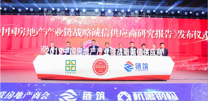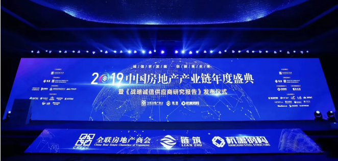 12月18日,由全聯(lián)房地產(chǎn)商會主辦的“誠信求發(fā)展,創(chuàng)新享未來”2019中國產(chǎn)地產(chǎn)產(chǎn)業(yè)鏈年度盛典暨《戰(zhàn)略誠信供應(yīng)商研究報告》發(fā)布儀式在北京盛大舉行,本次盛典旨在通過行業(yè)交流盛會促進產(chǎn)業(yè)鏈相關(guān)企業(yè)快速轉(zhuǎn)型和發(fā)展。杭蕭鋼構(gòu)股份有限公司(以下簡稱“杭蕭鋼構(gòu)”)受邀出席。