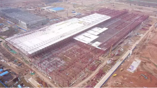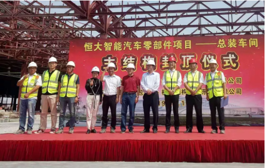 總裝車間作為恒大汽車城車間中體量最大、開工最晚、封頂最早的單體結構,僅歷時3個多月,其主體結構便高質高效、按時順利封頂。這標志著項目正式進入次結構、屋面工程及防火涂料施工階段,不僅為恒大汽車城工程樹立了標桿,而且堅定了全體項目人員敢打必贏的信心。
