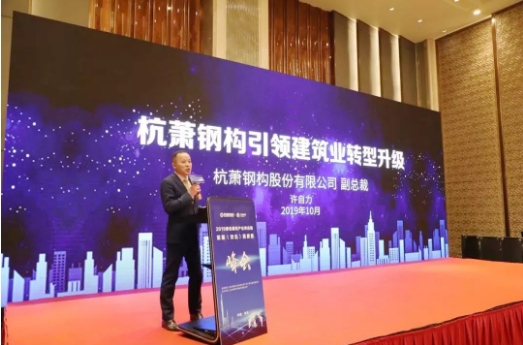 ?????? 杭蕭鋼構(gòu)副總裁許自力演講《杭蕭鋼構(gòu)引領(lǐng)建筑業(yè)轉(zhuǎn)型升級(jí)》,分享公司戰(zhàn)略轉(zhuǎn)型經(jīng)驗(yàn),引發(fā)現(xiàn)場(chǎng)嘉賓的高度關(guān)注和廣泛共鳴。