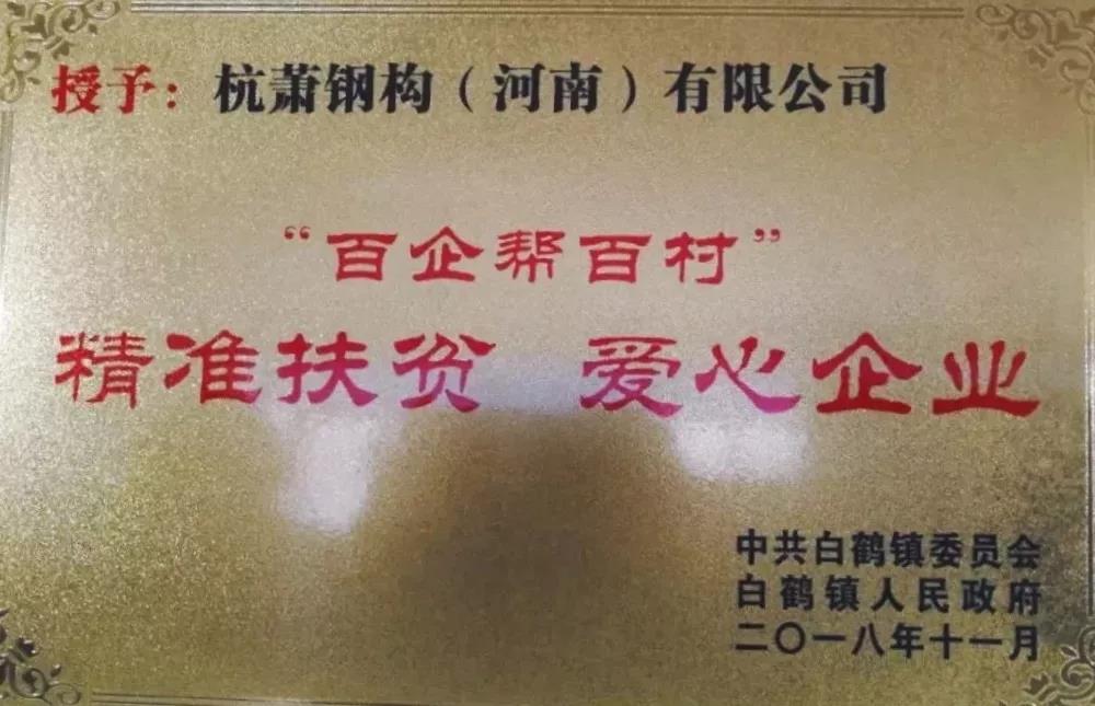 近日,河南省洛陽市孟津縣召開了“2018年孟津縣關(guān)心下一代工作暨先進企業(yè)總結(jié)表彰大會”,會上對以杭蕭鋼構(gòu)(河南)有限公司(以下簡稱“河南杭蕭”)為代表的先進愛心企業(yè)進行了表彰及頒獎。